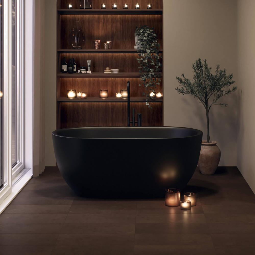 De mjuka formerna och hela badkarets visuella intryck har gjort denna badkarsmodell till en absolut kundfavorit. Här i sobert mattsvart utförande. Lanseras i mars 2024.