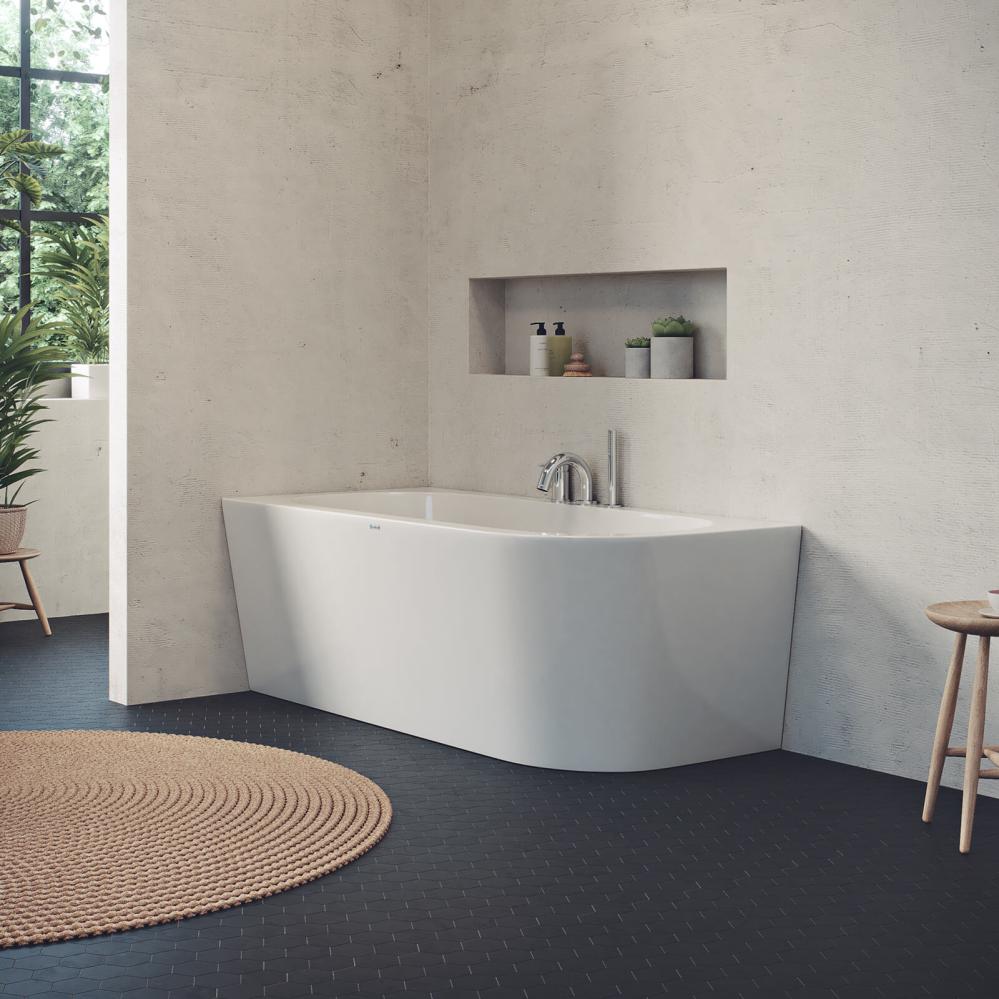 Precis som Klarvik har den här modellen dubbel rygglutning, så du kan sitta åt båda håll. Designen ger känslan av ett fristående badkar, trots placeringen.