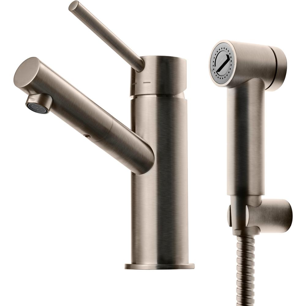 Tvättställs- och bidéblandare. Kombineras med pop-upventil 74400. Utstick (utloppshuvud) 128 mm. Mått: B 55 mm, H 155,5 mm, D 155,5 mm. Färg: Borstat Nickel.