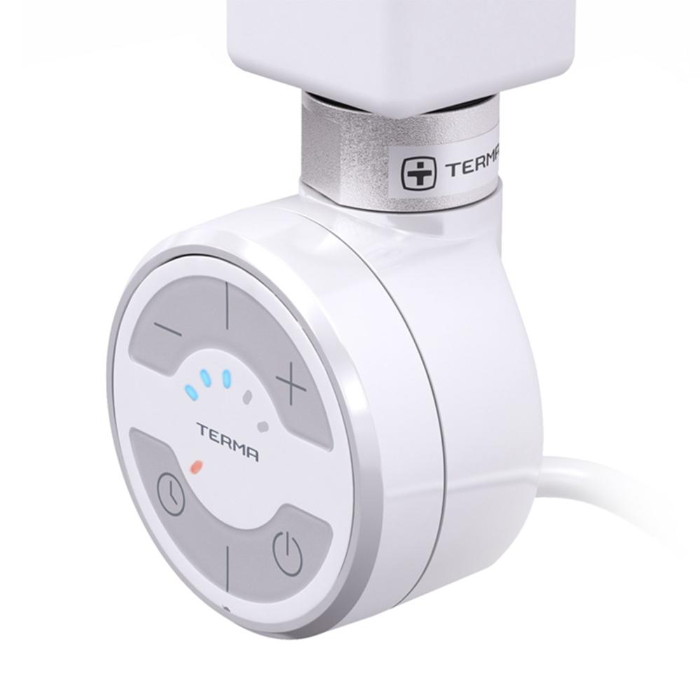 Välj temperatur mellan 30-60 grader i 5 olika steg. De 5 stegen visas på patronen i form av 5 lysdioder. Timerfunktion för att stänga av värmen med fördröjning på 2 timmar. Timerfunktion för att öka värmen under 2 timmar för att sedan återgå till föregående temperatur. Kapslingsklass IPX5. CE märkt och S-godkänd Kabeln är föransluten och inkapslad i termostaten. Vid installationen ansluts kabeln till närmsta kopplingspunkt. Standardlängd på kabeln är 1,5 m. Elpatronen levereras för fast installation