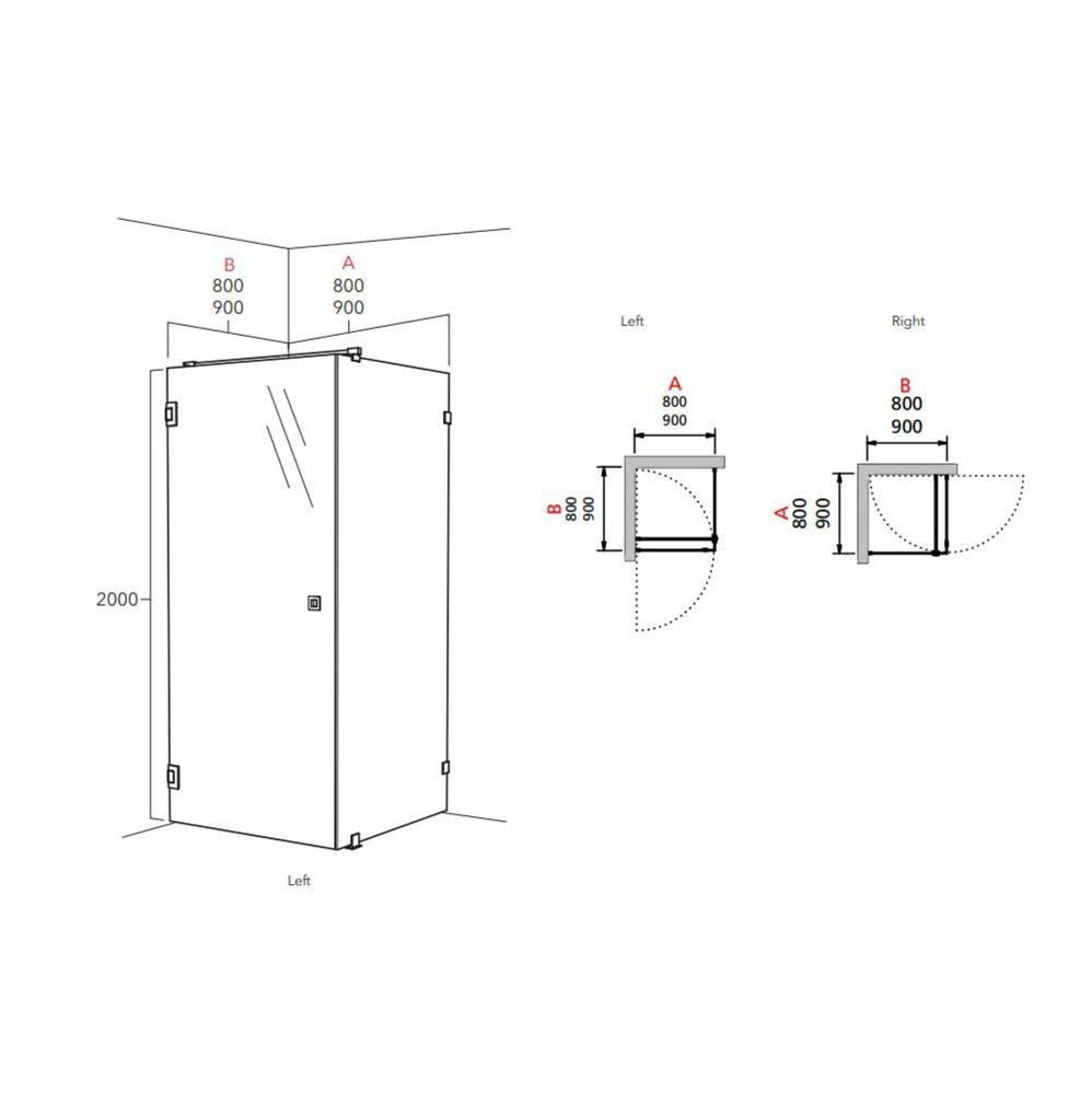 Duschvägg ARC 13 Original, Klarglas, Blank krom, Dörr 800 mm (A), Fast 900 mm (B), Höjd 2000 mm, Grepp SQUARE.