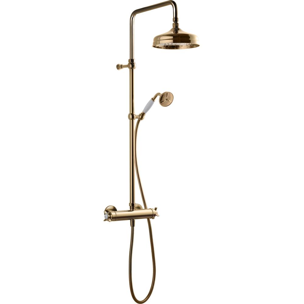 Duschkolumn Tapwell XCOL7200-160 i polerad mässing. Diameter takduschhuvud 250 mm. Tryckstyrd och med temperaturkontroll. Mått (B x D x H): 305 x 495 x 495 mm. Ej inbyggd.