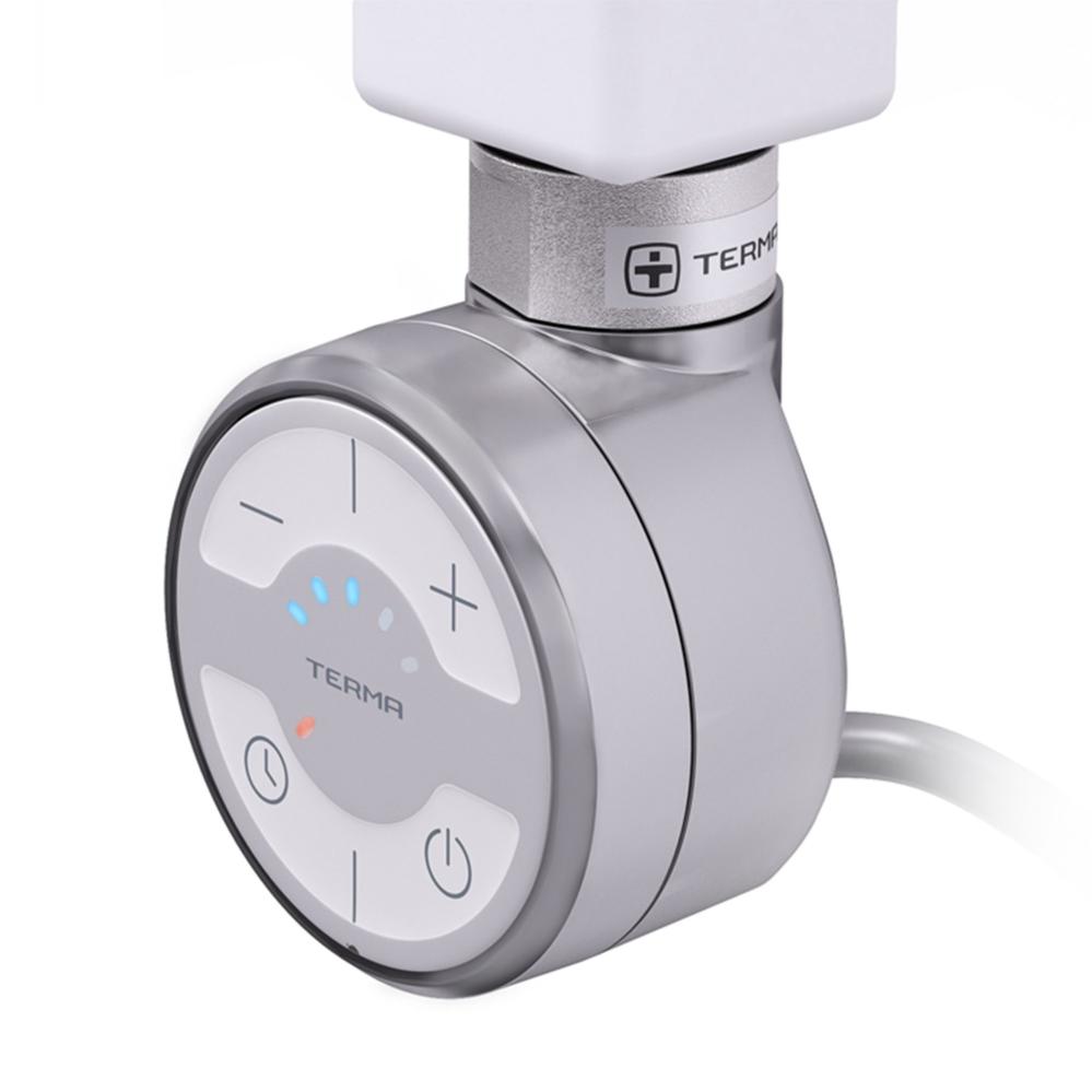 Välj temperatur mellan 30-60 grader i 5 olika steg. De 5 stegen visas på patronen i form av 5 lysdioder. Timerfunktion för att stänga av värmen med fördröjning på 2 timmar. Timerfunktion för att öka värmen under 2 timmar för att sedan återgå till föregående temperatur. Kapslingsklass IPX5. CE märkt och S-godkänd Kabeln är föransluten och inkapslad i termostaten. Vid installationen ansluts kabeln till närmsta kopplingspunkt. Standardlängd på kabeln är 1,5 m. Elpatronen levereras för fast installation