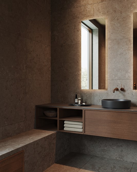 Låt klinker i granitkeramik lägga grunden till ditt badrum – ett slitstarkt och tidlöst material som fungerar lika bra på golv som på vägg. Inspirerad av den nordiska kalkstenens uttryck skapar plattorna en harmonisk bas som är enkel att bygga vidare på. Granitkeramik är ett hållbart val med hög tålighet mot fukt och slitage – perfekt anpassat för badrumsmiljöer.