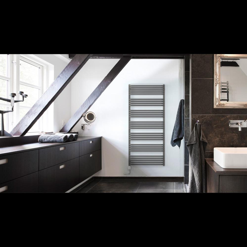 Med sina lätt utåtbuktande rör skapar Alex enkelhet och intryck samtidigt som det blir lätt att komma åt, hänga upp och ta ner handdukarna. Handdukarna omfamnas av Alex och ges optimal möjlighet att torka effektivt. Alex finns för el, vatten eller kombinerad drift och du väljer elpatron/radiatorventil efter behov. Alex finns i många olika färger - välj och ge en färgklick till ditt badrum.