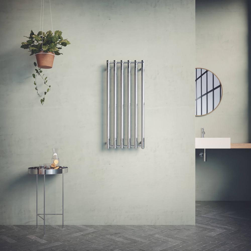 Nordhems mest uppskattade handdukstork Rosendal är designskyddad och charmar de flesta med sitt särpräglade yttre. Alla detaljer är väldesignade och av högsta kvalitet och Rosendals innovativa, vertikala form gör det möjligt att placera den i annars svårmöblerade badrum. De integrerade krokarna gör Rosendal optimal för att hänga upp handdukar och badlakan. Hängande handdukar skapar även bra förutsättningar för luftcirkulationen att komma åt och torka dem. Välj mellan två, fyra eller sex rör samt två höjder. Rosendal finns i hela sju olika ytor; vit, mattsvart, krom, borstat rostfritt, mässing polerad obehandlad, mässing högblank och koppar polerad obehandlad.