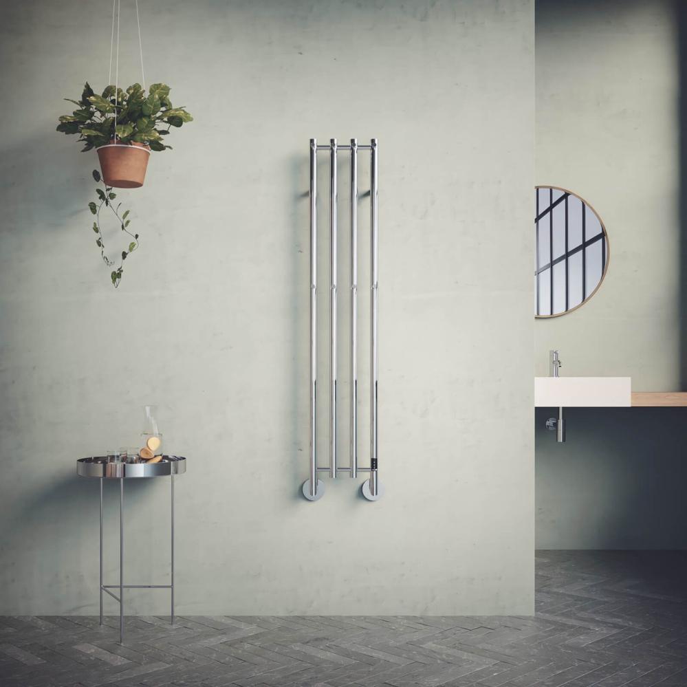 En elektrisk handdukstork i elegant och slimmat format med fyra vertikala rör. Den har dessutom en smart booster- och timerfunktion. Viberg finns i polerat rostfritt stål, PVD guld/mässing, borstat rostfritt stål och mattsvart. Måtten är 1230 x 330 mm (med fyra krokar) samt 1430 x 330 mm (med åtta krokar i två nivåer).Viberg kännetecknas av ett elegant och slimmat formspråk med vertikala rör. Handdukarna hängs snabbt och lätt upp på de integrerade krokarna, vilket minskar risken att de hamnar på badrumsgolvet. Booster- och timerfunktion ger energibesparande funktionalitet. Finns i ytorna mattsvart, polerat rostfritt stål, PVD guld/mässing och borstat rostfritt stål.Viberg är en elhanddukstork som värms upp med en invändig värmekabel, s.k. ”dry electric”, så någon elpatron behövs ej. Välj mellan att installera den med dold anslutning på höger eller vänster sida alternativt utanpåliggande sladd. Alla installationsalternativ är möjliga för respektive artikelnummer. Sladdset med stickkontakt ingår.