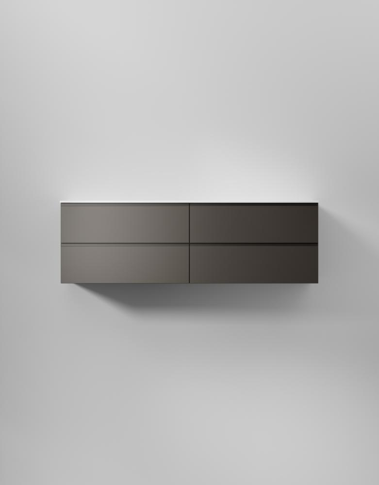 En stilren kommod med slät front och integrerad grepplist som smälter in i designen och ger ett minimalistiskt uttryck. Ytbehandlad med TX Top Extreme™ som skyddar mot fukt och slitage gör INR:s badrumsmöbler till ett tryggt val. Anpassa din kommod med porslinstvättställ, solid surface med en snygg matt finish, eller bänkskiva med ett ovanpåliggande tvättställ. Lådornas genomtänkta design med soft-close och antiglidmattor kan förstärkas med tillval som sensorstyrd belysning och dubbelt eluttag för optimal funktionalitet.