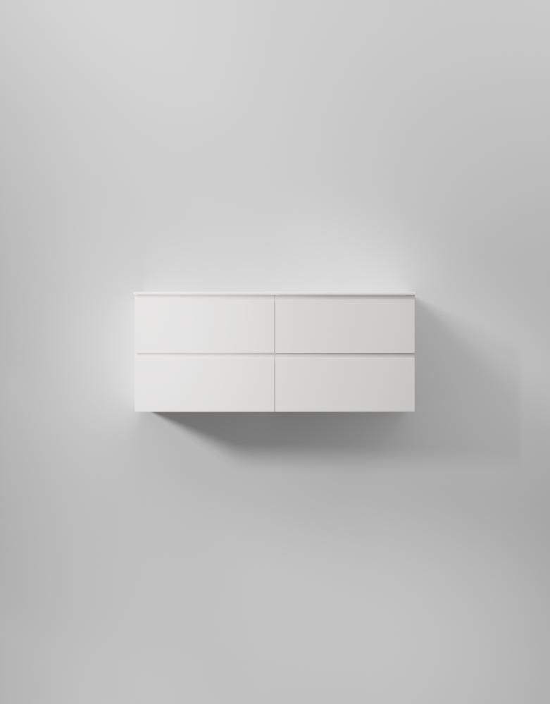 En stilren kommod med slät front och integrerad grepplist som smälter in i designen och ger ett minimalistiskt uttryck. Ytbehandlad med TX Top Extreme™ som skyddar mot fukt och slitage gör INR:s badrumsmöbler till ett tryggt val. Anpassa din kommod med porslinstvättställ, solid surface med en snygg matt finish, eller bänkskiva med ett ovanpåliggande tvättställ. Lådornas genomtänkta design med soft-close och antiglidmattor kan förstärkas med tillval som sensorstyrd belysning och dubbelt eluttag för optimal funktionalitet.