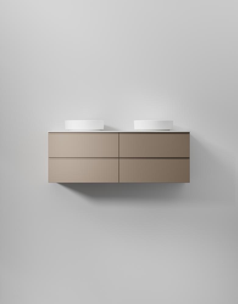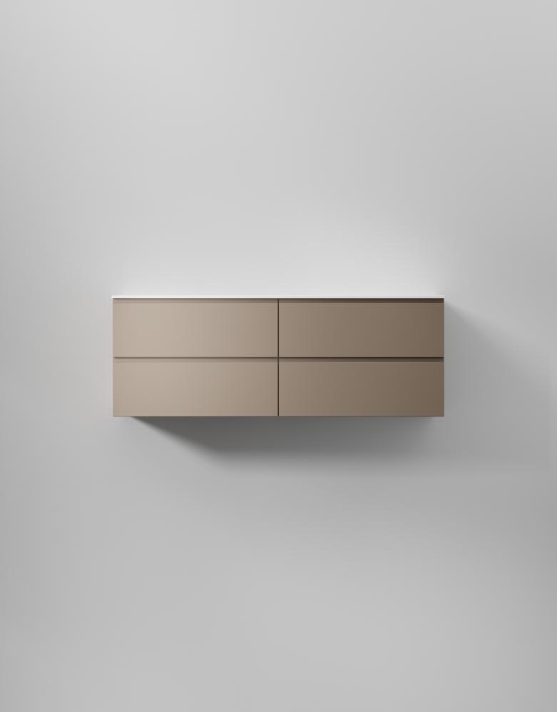 En stilren kommod med slät front och integrerad grepplist som smälter in i designen och ger ett minimalistiskt uttryck. Ytbehandlad med TX Top Extreme™ som skyddar mot fukt och slitage gör INR:s badrumsmöbler till ett tryggt val. Anpassa din kommod med porslinstvättställ, solid surface med en snygg matt finish, eller bänkskiva med ett ovanpåliggande tvättställ. Lådornas genomtänkta design med soft-close och antiglidmattor kan förstärkas med tillval som sensorstyrd belysning och dubbelt eluttag för optimal funktionalitet.