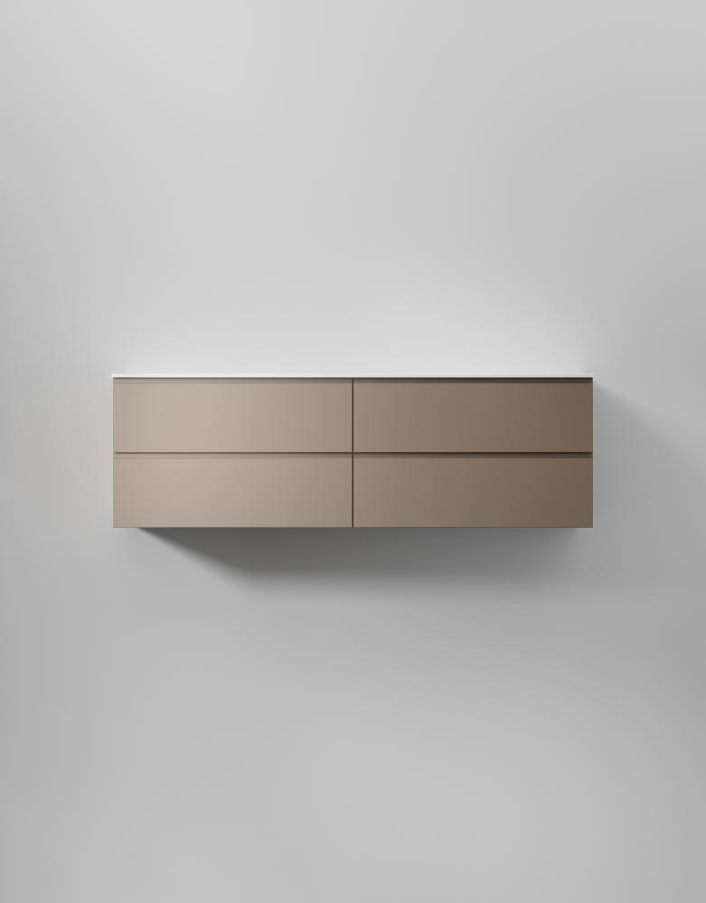 En stilren kommod med slät front och integrerad grepplist som smälter in i designen och ger ett minimalistiskt uttryck. Ytbehandlad med TX Top Extreme™ som skyddar mot fukt och slitage gör INR:s badrumsmöbler till ett tryggt val. Anpassa din kommod med porslinstvättställ, solid surface med en snygg matt finish, eller bänkskiva med ett ovanpåliggande tvättställ. Lådornas genomtänkta design med soft-close och antiglidmattor kan förstärkas med tillval som sensorstyrd belysning och dubbelt eluttag för optimal funktionalitet.