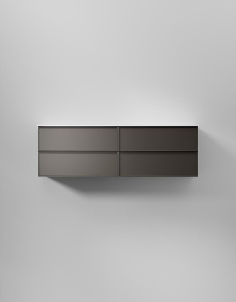 Slät front med ram med dolt grepp ger denna svensktillverkade badrumskommod en distinkt och stilren karaktär. Välj fanér för en modern retrokänsla. Lådor med soft-close och antiglidmattor kombinerar stil och funktion, medan TX Top Extreme™ ytbehandlingen skyddar mot fukt och slitage i minst 15 år. Välj mellan porslinstvättställ, solid surface med en matt finish, eller en bänkskiva med ovanpåliggande tvättställ för att skräddarsy din kommod. Anpassa med val som sensorstyrd belysning och dubbelt eluttag.