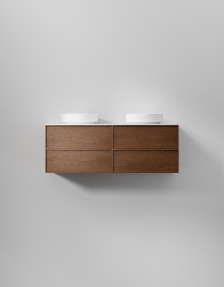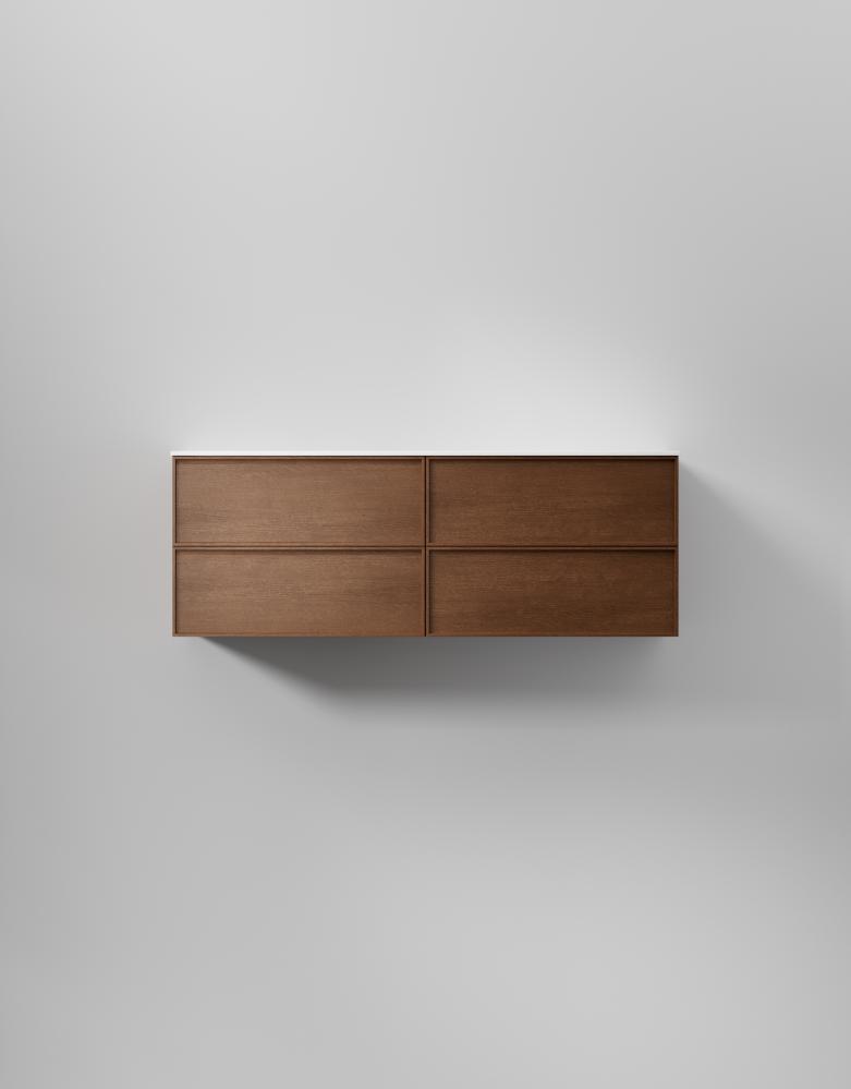 Slät front med ram med dolt grepp ger denna svensktillverkade badrumskommod en distinkt och stilren karaktär. Välj fanér för en modern retrokänsla. Lådor med soft-close och antiglidmattor kombinerar stil och funktion, medan TX Top Extreme™ ytbehandlingen skyddar mot fukt och slitage i minst 15 år. Välj mellan porslinstvättställ, solid surface med en matt finish, eller en bänkskiva med ovanpåliggande tvättställ för att skräddarsy din kommod. Anpassa med val som sensorstyrd belysning och dubbelt eluttag.