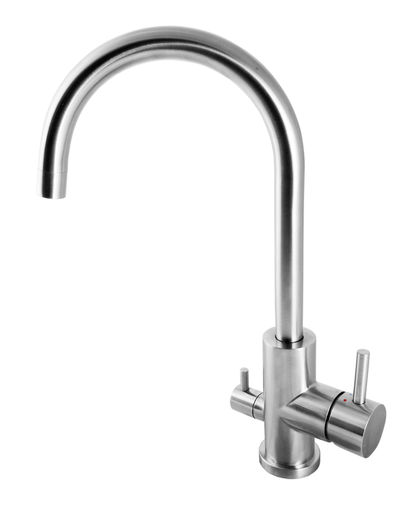 Köksblandare rostfri med svängd pip, diskmaskinsavstängning