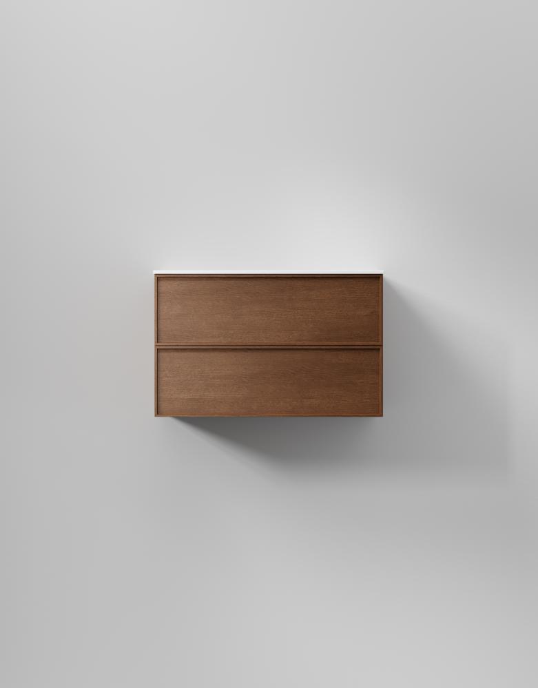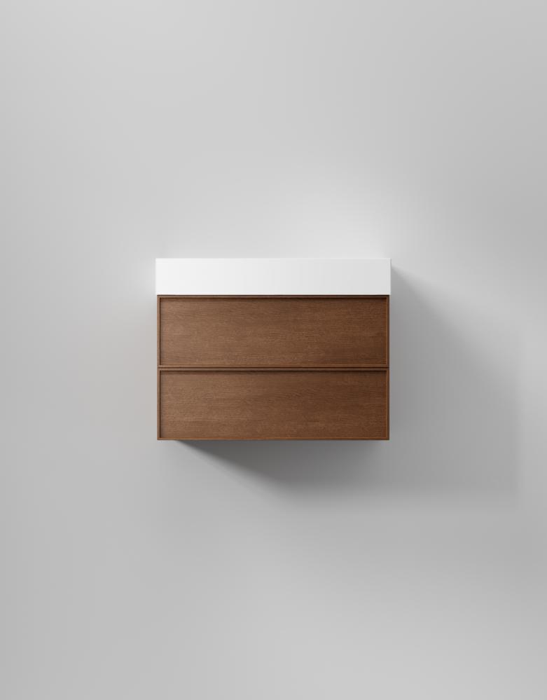Slät front med ram med dolt grepp ger denna svensktillverkade badrumskommod en distinkt och stilren karaktär. Välj fanér för en modern retrokänsla. Lådor med soft-close och antiglidmattor kombinerar stil och funktion, medan TX Top Extreme™ ytbehandlingen skyddar mot fukt och slitage i minst 15 år. Välj mellan porslinstvättställ, solid surface med en matt finish, eller en bänkskiva med ovanpåliggande tvättställ för att skräddarsy din kommod. Anpassa med val som sensorstyrd belysning och dubbelt eluttag.