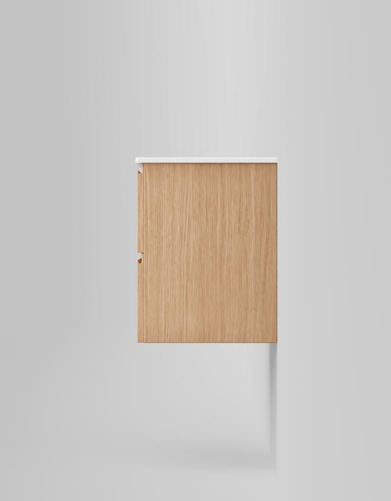 Liten och nätt kommod med ett grunt djup och slät front med integrerad grepplist. XS-serien skapar en rymlig känsla i trånga utrymmen, samtidigt som den erbjuder smart förvaring. Ytbehandlad med TX Top Extreme™ håller din möbel för dagligt bruk under minst 15 år. Slitstarkt tvättställ i porslin med en blank yta ingår. Lådor med soft-close och antiglidmattor ingår medan stämningsgivande, sensorstyrd belysning och dubbelt eluttag är tillval.