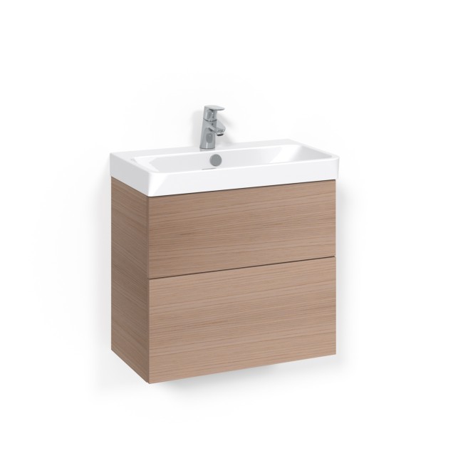 Crown kommod har två mjukstängande och rymliga lådor. Plain vit finns även som lucka inkl handtag. Tvättställ Light 70 ingår alltid och är av äkta sanitetsporslin. Enkel montering.