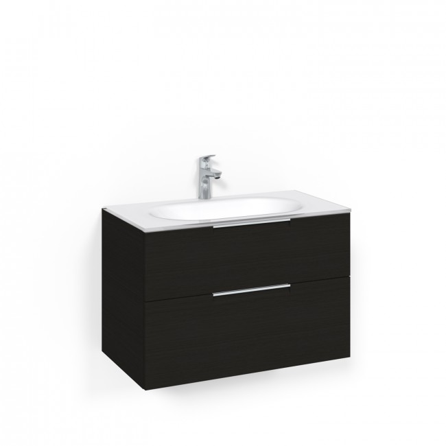 Crown kommod har många valmöjligheter. Tvättställ ingår alltid och är av glas, men Macro har även kommoder med tvättställ i äkta sanitetsporslin. Kommoden har två mjukstängande och rymliga lådor med lyxig lådinredning i den översta lådan, storlek 120 (1200 mm) har fyra lådor. Patentsökt monteringsskena för enkel montering.