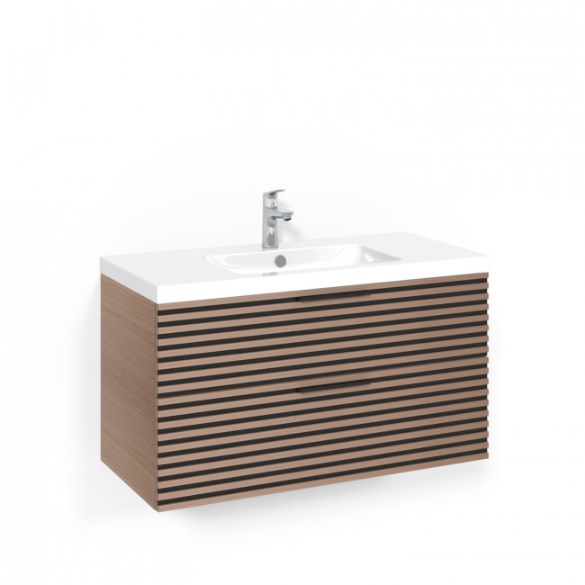 Kommoden har två mjukstängande och rymliga lådor med lyxig lådinredning i den översta lådan. Storlek 120 (1200 mm) har fyra lådor, och tvättställ Light 14, som dubbeltvättho.