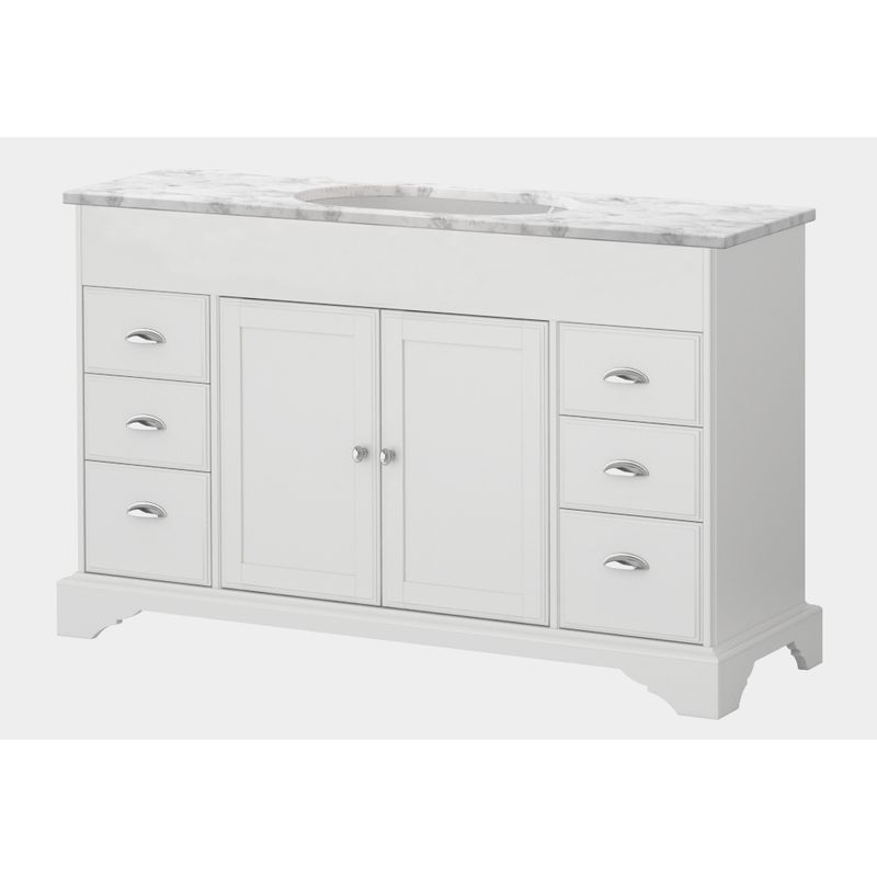 Sekel Kommod 130 Vit. 130. Ingår: vattenlås, 2 st lådindelare, lådmatta | Beställs separat: stenskiva med underlimmat tvättställ | Tillval: beslag, eluttag för låda | Golvstående med sockel | Mått på kommod är angivet med stenskiva .