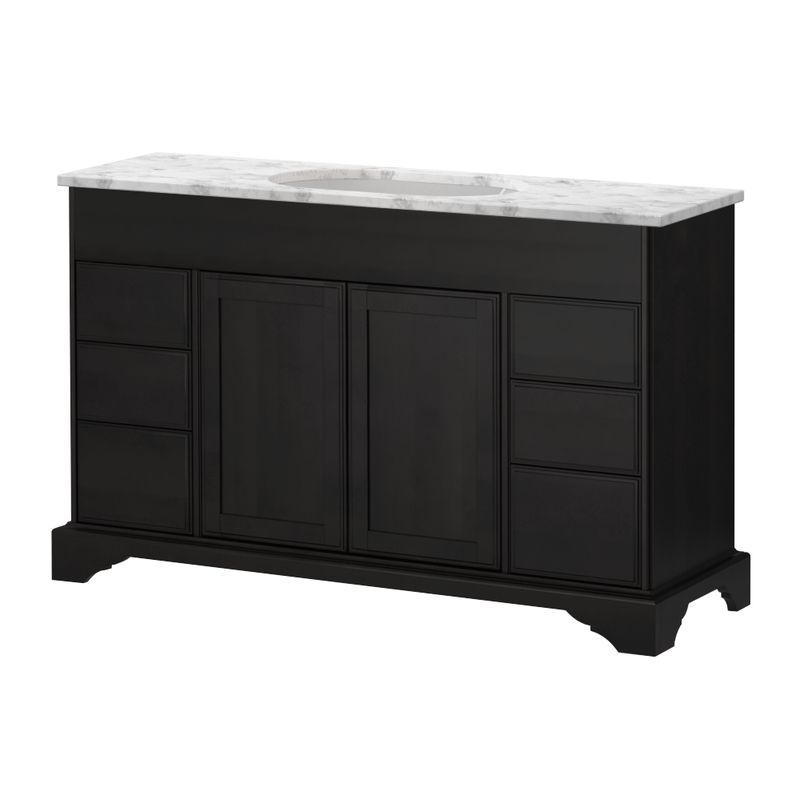 Sekel Kommod 130 Svart (björk). 130. Ingår: vattenlås, 2 st lådindelare, lådmatta | Beställs separat: stenskiva med underlimmat tvättställ | Tillval: beslag, eluttag för låda | Golvstående med sockel | Mått på kommod är angivet med stenskiva .