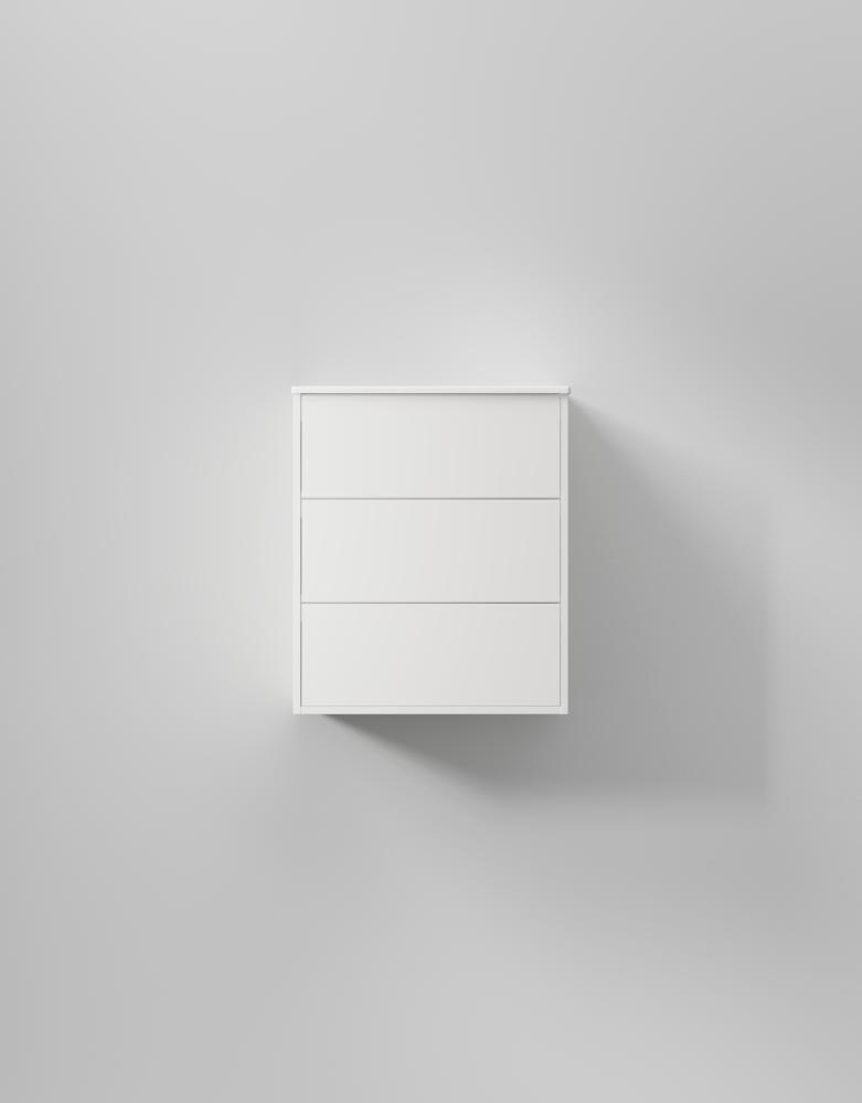Trots sin kompakta bredd rymmer möbeln tre lådor. Formspråket är stilrent och kompromisslöst, byggt på skandinaviskt hantverk med genomtänkta detaljer på alla plan.