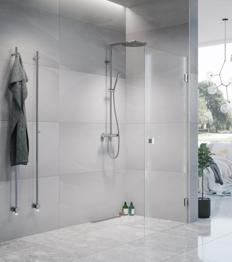 Den minimalistiska designen på Grace tilltalar många i form och uttryck och skapar ett lyxigt badrum med stora glasytor och vackra detaljer. Grace Dörr är en lyxig duschlösning för dig som söker det lilla extra. Dörren kan fällas in mot väggen efter användning. Välj Grace Skärmvägg med beslag i olika färgvarianter.