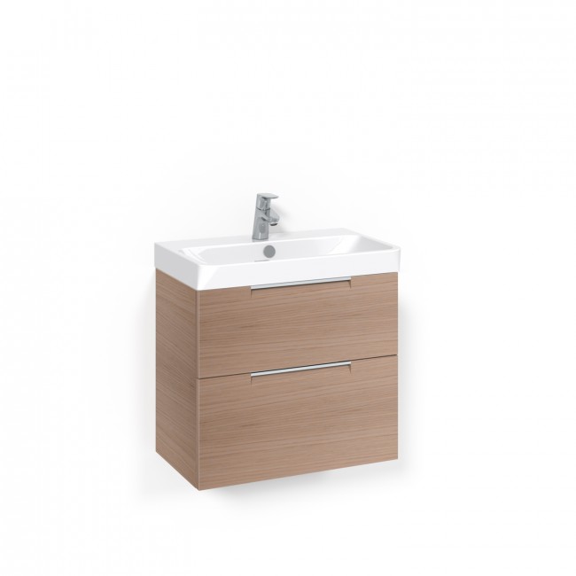 Crown kommod har två mjukstängande och rymliga lådor. Plain vit finns även som lucka inkl handtag. Tvättställ Light 70 ingår alltid och är av äkta sanitetsporslin. Enkel montering.