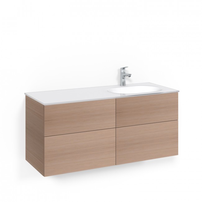 Macro Design Kommod Crown Plain med Glastvättställ 120 (Ljus Ek/Vit, höger/med push-open)