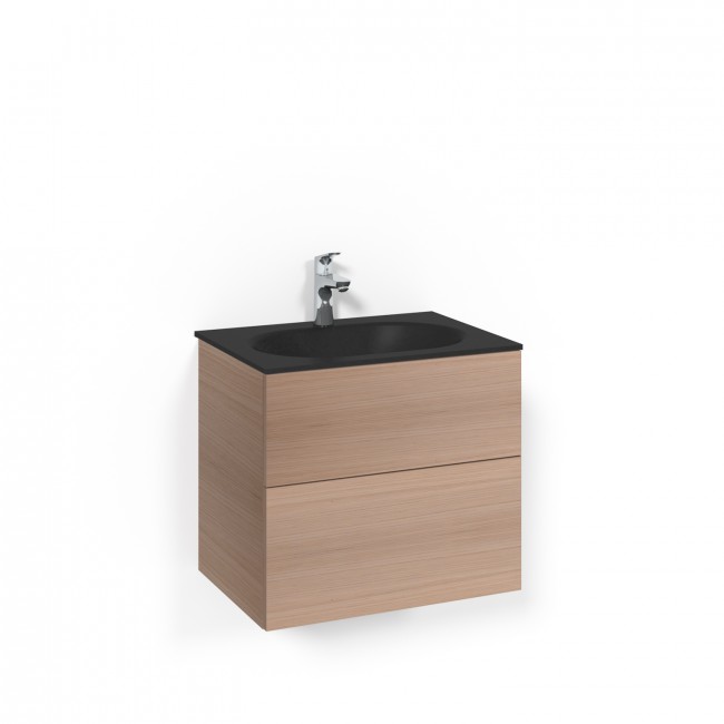 Macro Design Kommod Crown Plain med Glastvättställ 60 (Ljus Ek/Mattsvart/utan push-open)