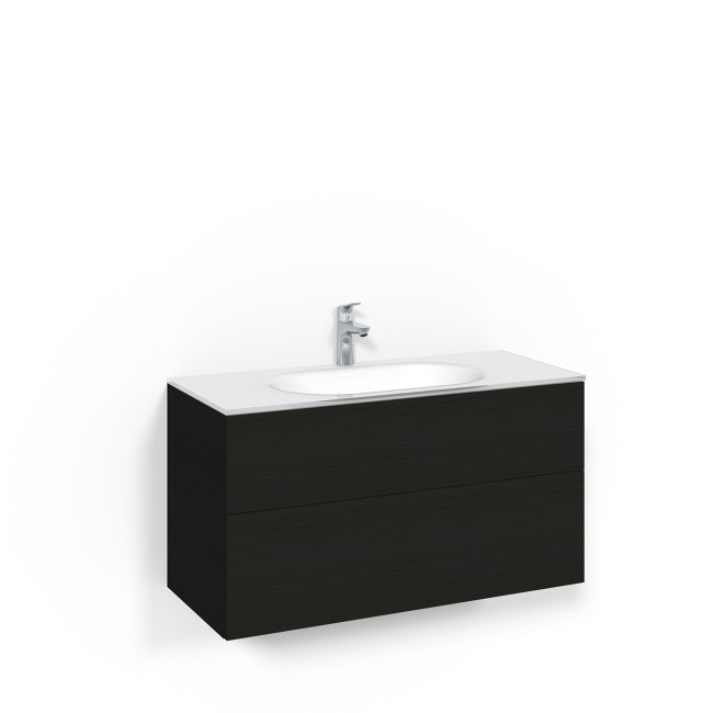 Crown kommod har många valmöjligheter. Tvättställ ingår alltid och är av glas, men Macro har även kommoder med tvättställ i äkta sanitetsporslin. Kommoden har två mjukstängande och rymliga lådor med lyxig lådinredning i den översta lådan, storlek 120 (1200 mm) har fyra lådor. Patentsökt monteringsskena för enkel montering.