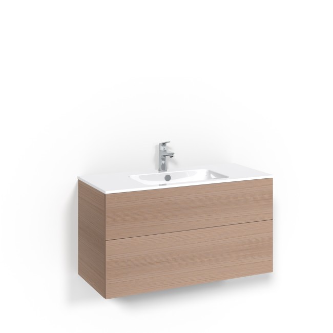Macro Design Kommod Crown Plain med Porslinstvättställ 100 (Ljus Ek/Light 14/med push-open)