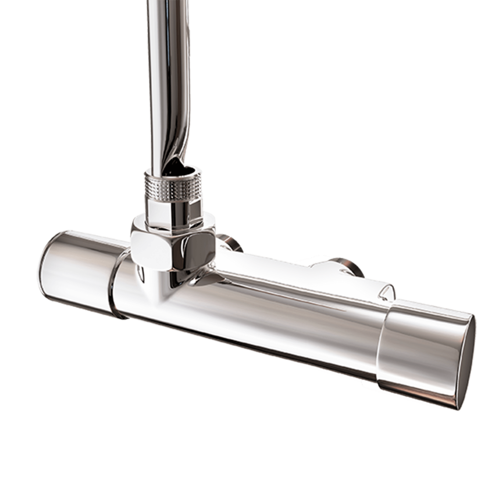 En designad manuell vattenventil för anslutning till vattnet från centralvärmesystemet. Vinklad ventil i vänsterutförande. 60 c/c.