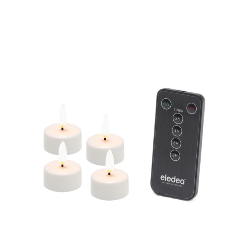 Ett färdigt kit av LED-värmeljus med en mjukt flimrande och levande flamma som ger den rätta stämningen i hemmet och fjärrkontroll. LED-ljusen är säkra att bära och flytta på eftersom de inte blir varma - ett säkert val för familjen, eller i hemmet där det finns husdjur. Samtidigt skapar de en vacker och inbjudande atmosfär i alla slags miljöer. Med den medföljande fjärrkontrollen kan du både släcka och tända ljusen och den har även en timerfunktion där du kan välja att låta ljusen lysa 2, 4, 6 eller 8 timmar.