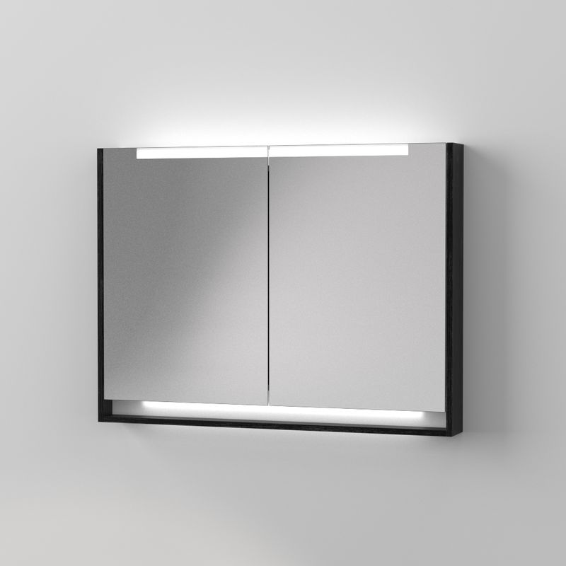 Gripen Spegelskåp 100 med LED över och underbelysning Svart ek