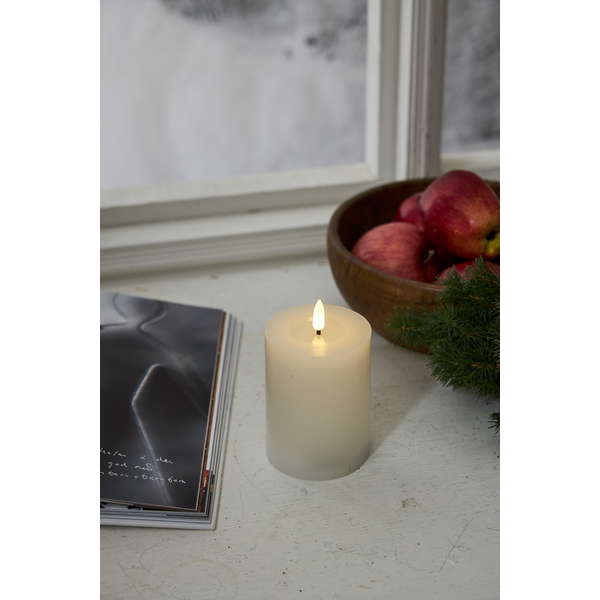 Detta ledljus blir en vacker dekoration, både ensam och i grupp ihop med övriga ljus från Star Tradings Flamme-serie. Den har timerfunktion och när brytaren är på timerläget lyser ljuset i ca 250 dagar med en vacker realistisk låga i varmvitt.