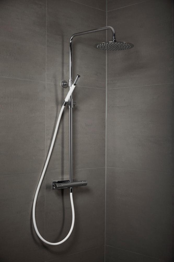 I den smäckra termostatblandaren ryms flera innovativa tekniker som INR tillsammans är ensamma om på marknaden, såsom Safe Temp med unik vattentrycks- och temperaturkontroll vilket gör din duschupplevelse extra njutbar samt Eco Flow och Easy Clean som håller både vattenkostnaden och städtiden nere. MIST är takduschen för dig som vill ha det bästa av två världar och du väljer själv om du vill kombinera den förkromade duschblandaren och takduschen med handdusch i samma finish eller med gummidetaljer i vitt eller svart.