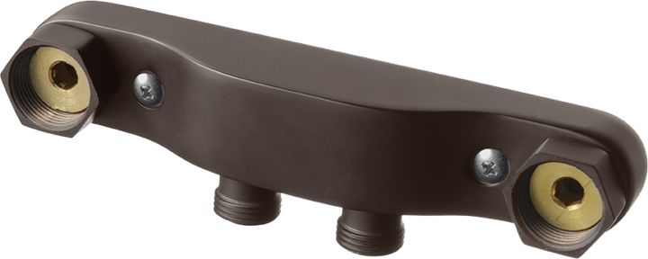 Blandarfäste för utanpåliggande rör med anslutningsrör 40 cc. Tillverkad i mässing. Anslutning mot blandare M26x1,5, för kontätning. Modellen går att vända på. VVS-skruv är inkluderat.