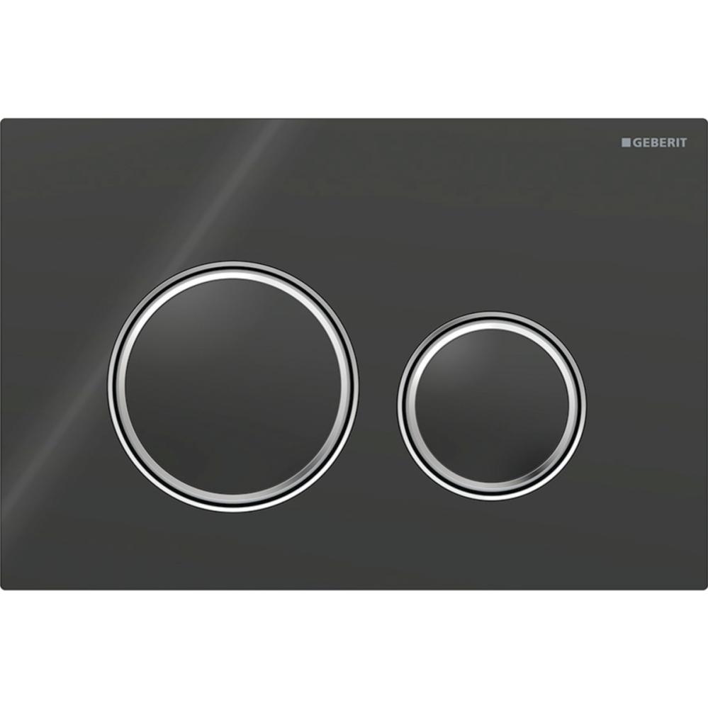 Montageplatta & designringar: förkromade. Täckplatta & knappar: svart