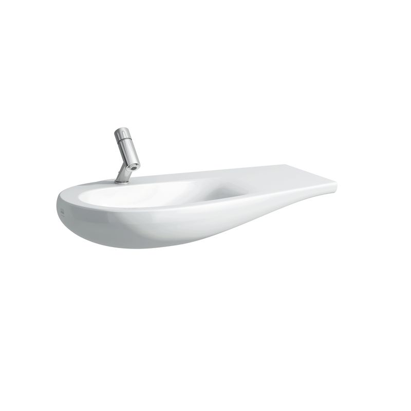 Alessi ONE Tvättställ Tuna H för underskåp/väggmontage 90x50cm, hylla höger, med kranhål Vit (LCC) Höger. Tuna H för underskåp/väggmontage 90x50cm, hylla höger, med kranhål. Med 1 kranhål i mitten av bassäng, Inkl. Clou dolt överfyllnadsskydd, bassäng till vänster | Tillval: Underskåp.