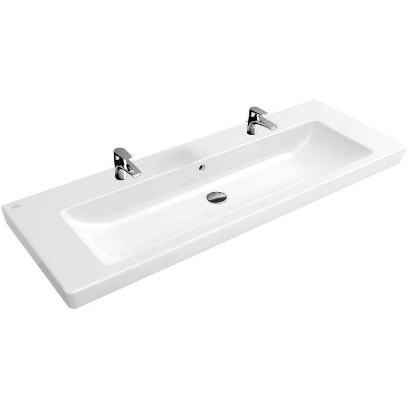 Vilan/Gripen Tvättställ 130 | Subway 2.0 | En Bassäng | 2 blandarhål Vit porslin. 130 | Subway 2.0 | En Bassäng | 2 blandarhål. Villeroy och Boch| Ingår ej: Bottenventil | Avsedd för: Vilan Kommod 130, Gripen kommod 130 | Beställs separat: Up-and-Down Push lyftventil | Funkar enbart med Up-and-Down Push bottenventil, ej med lyftventil med arm då blandarhål ej är placerat vid avloppshål .