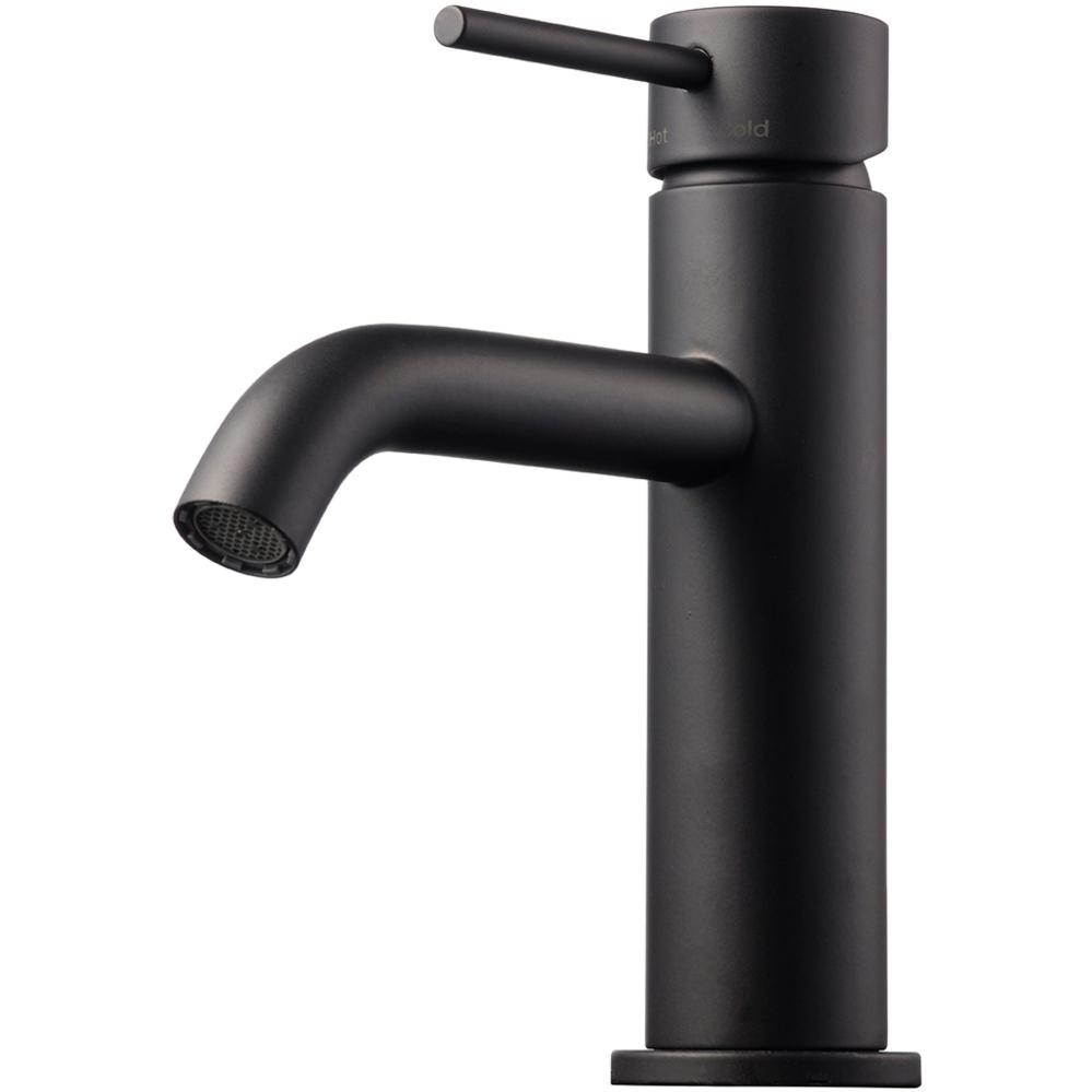 Tvättställsblandare för medelstora och små tvättställ. Utsprång (utloppshuvud) 114 mm, produktbredd 45 mm. Färg: matt svart. Vridbart huvud: nej. Inbyggd: nej. Kombineras med uppfällbart avlopp 74400.